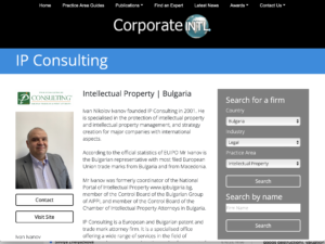 IP Consulting is nominated from Bulgaria as an Intellectual Property service provider featured in Corp – INTL.